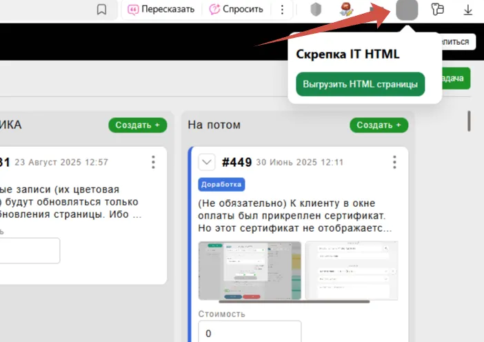 HTML можно получить скопировав HTML код страницы в браузере и вставив в заранее созданный файл с расширением html. Но если Вы не знаете как это сделать, рекомендуем поставить расширение для браузера Chrome или Яндекс по ссылке https://screpkait.ru/chrome.crx. Достаточно в браузере открыть список расширения и перенести этот файл перетягиванием. после чего у Вас появится новое расширение и выбрав вкладку, нажимаете на иконку расширения через кнопку "Выгрузить HTML страницы" получите файл html.